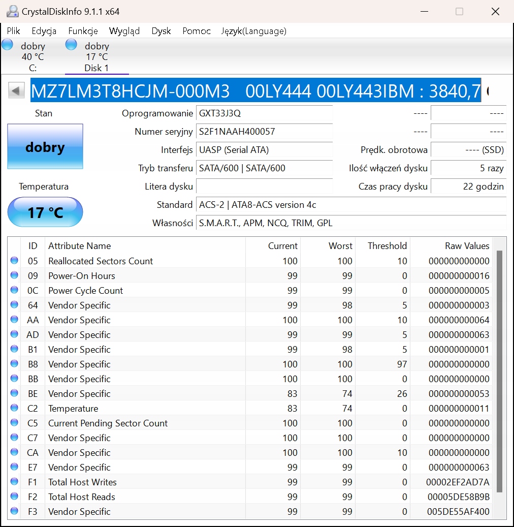 - Ilość włączeń dysku : 5