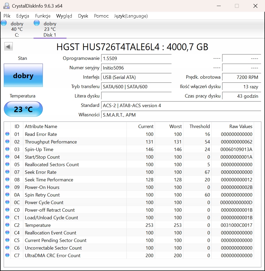 Zakres temperatur (eksploatacja): 0 – 60 °C